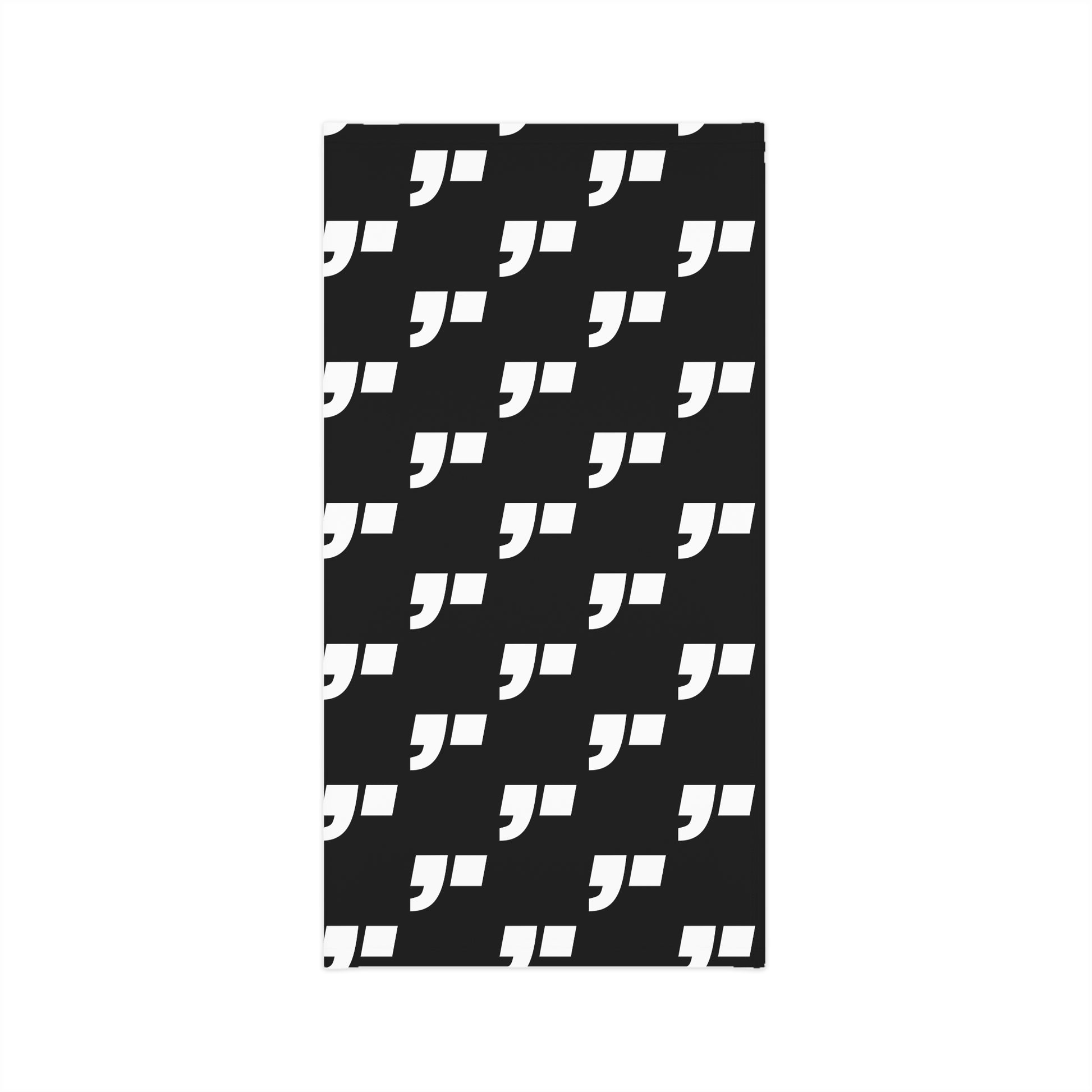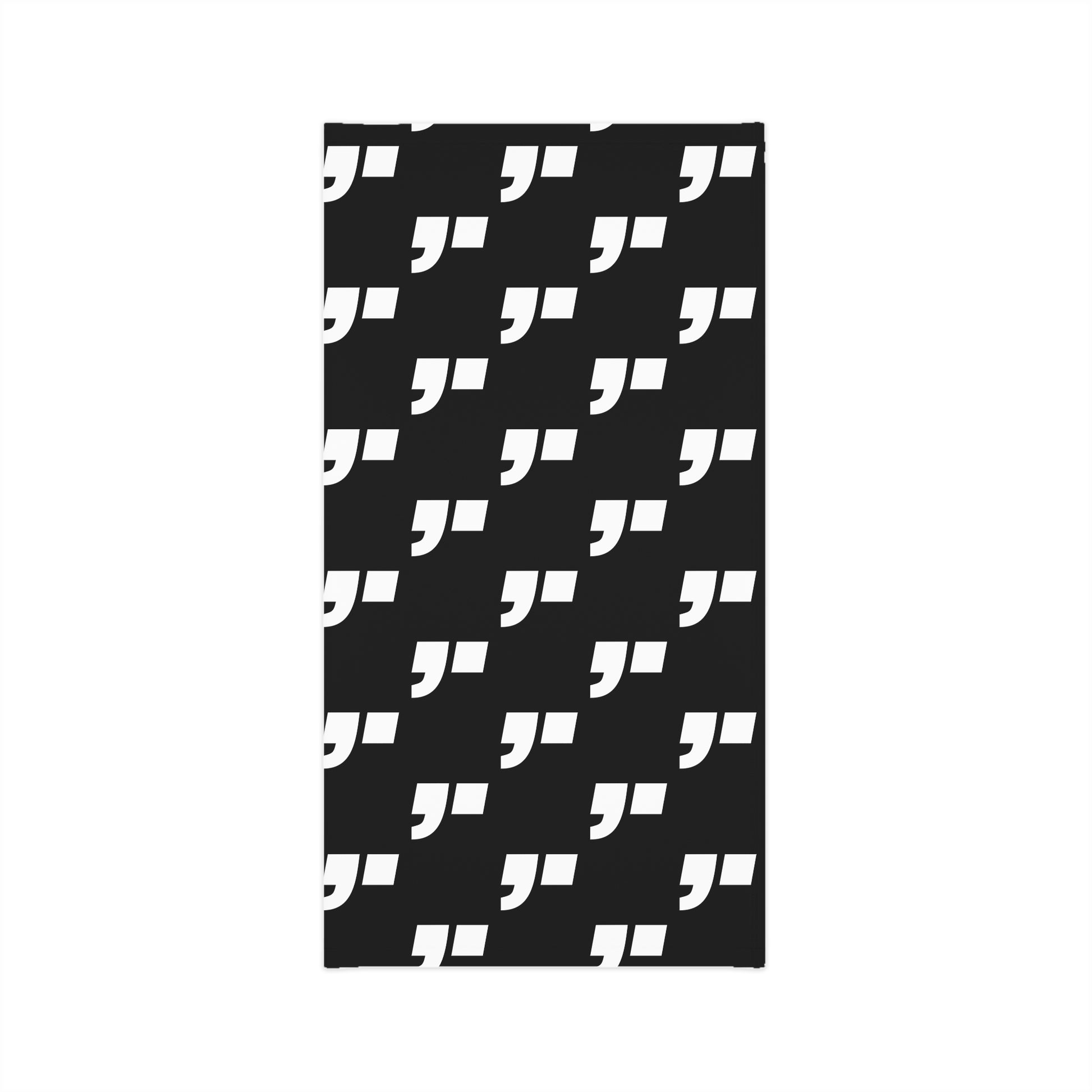Minimalist black design with COMMA. insignia.